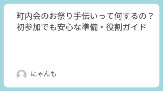知 町内会のお祭り手伝いって何するの?初参加でも安心な準備・役割ガイド 町内会のお祭り手伝いで何をするのかを解説。準備・屋台・受付・交通整理・片付けなど、初参加でも安心な役割と参加のコツをまとめました。 2025.10.13 知
