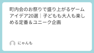 楽 町内会のお祭りで盛り上がるゲームアイデア20選|子どもも大人も楽しめる定番&ユニーク企画 町内会のお祭りで盛り上がるゲームアイデア20選を紹介。スーパーボールすくい・ビンゴ大会・綱引き・仮装コンテストなど、子どもも大人も楽しめる定番&ユニーク企画を厳選しました。 2025.10.16 楽