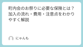 知 町内会のお祭りに必要な保険とは?加入の流れ・費用・注意点をわかりやすく解説 町内会のお祭りに必要な保険を解説。イベント保険・傷害保険・賠償責任保険の種類や、加入の流れ、費用の目安、注意点をわかりやすく紹介します。 2025.10.17 知