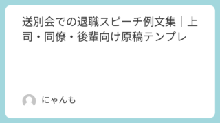 挨拶例文 送別会での退職スピーチ例文集|上司・同僚・後輩向け原稿テンプレ 退職スピーチ例文集。上司・同僚・後輩向けの原稿テンプレや時間別(30秒・1分・3分)スピーチ例を紹介。感謝と笑顔で円満退職を締めくくるコツを解説。 2025.10.15 挨拶例文
