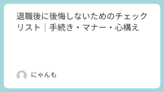 知 退職後に後悔しないためのチェックリスト|手続き・マナー・心構え 退職後に後悔しないための完全チェックリスト。社会保険・年金・税金などの手続きから、お礼マナー・心構えまでを徹底解説。円満退職を叶える実践ガイド。 2025.10.16 知