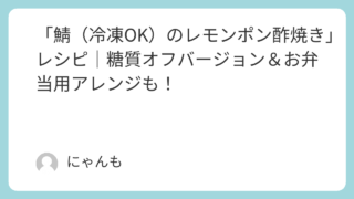 食 「鯖(冷凍OK)のレモンポン酢焼き」レシピ|糖質オフバージョン&お弁当用アレンジも! 冷凍サバで作れる「鯖のレモンポン酢焼き」は、鯖の旨み×レモンの爽やかさ×ポン酢の酸味が絶妙にマッチした、さっぱり系の焼き魚レシピです。糖質オフバージョン&お弁当用アレンジも掲載しています。 2025.10.12 食