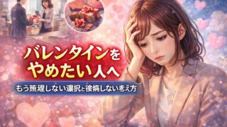 バレンタインをやめたいと感じる人へ。義理チョコや人間関係の負担に悩む方に向けて、やめても問題ない理由や後悔しない考え方、角が立たないやめ方をわかりやすく解説します。