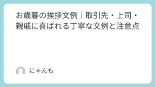 ギフト・プレゼント お歳暮の挨拶文例|取引先・上司・親戚に喜ばれる丁寧な文例と注意点 お歳暮に添える挨拶文例を相手別に紹介。取引先・上司・親戚に喜ばれる丁寧な表現とマナー、注意点を解説し、感謝が伝わるお歳暮の文面作成に役立ちます。 2025.10.02 ギフト・プレゼント挨拶例文