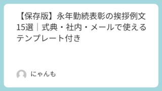 挨拶例文 【保存版】永年勤続表彰の挨拶例文15選|式典・社内・メールで使えるテンプレート付き 永年勤続表彰の挨拶例文15選。式典・社内・メール・英語・感動フレーズ、NG例と改善、準備マナー、記念品のお礼、心構え、表彰後の接し方、当日準備チェックリストまで網羅した究極保存版。 2025.10.02 挨拶例文