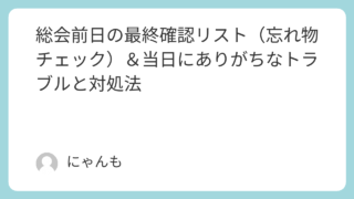 挨拶例文 総会前日の最終確認リスト(忘れ物チェック)&当日にありがちなトラブルと対処法 総会の開会挨拶・閉会挨拶を例文付きで解説。テンプレート、服装、チェックリスト、進行シナリオ、トラブル対処法、要点まとめ一覧まで網羅した10ページの完全保存版マニュアル。 2025.10.01 挨拶例文