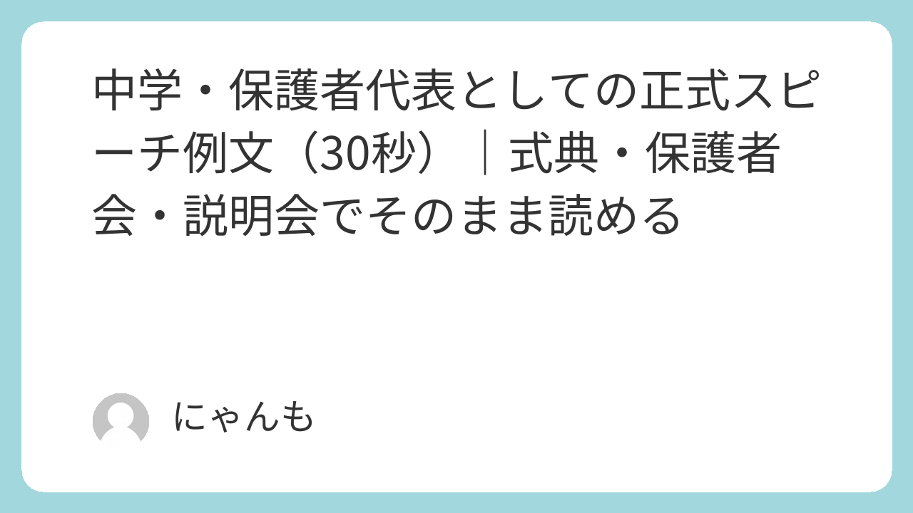 中学校の保護者代表としての正式スピーチを想定し、丁寧・簡潔・信頼感を重視した30秒程度の例文を用意しました。