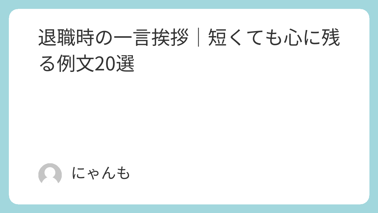 この記事では、退職時に使える短くても心に残る一言挨拶20選を紹介します。