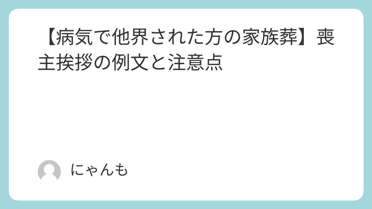 大切な家族を病気で亡くしたとき、喪主としての挨拶には特別な気遣いが求められます。