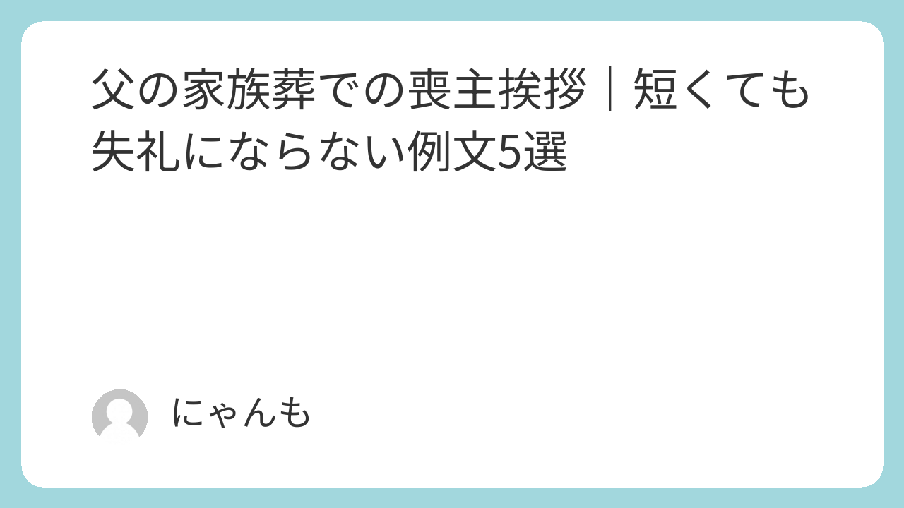 「父の葬儀に際し、多くの励ましとお力添えをいただき、心より感謝申し上げます。短い挨拶ではございますが、家族を代表して御礼申し上げます。」