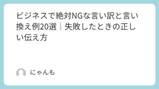 ビジネスで絶対NGな言い訳20選と好印象を与える言い換え例を紹介。上司・取引先への正しい伝え方や、失敗を信頼につなげる報告のコツも徹底解説。今日から言い訳しない人へ。
