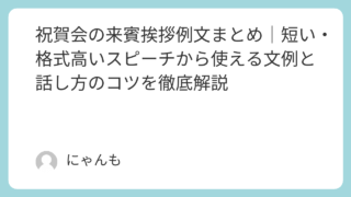 祝賀会での来賓挨拶に悩む方へ。短いスピーチから格式高い挨拶まで使える例文を場面別に紹介。基本構成・話し方のコツ・NG表現も解説し、初めてでも安心して話せるようになるガイドです。