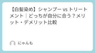 未分類 【白髪染め】シャンプー vs トリートメント|どっちが自分に合う?メリット・デメリット比較 白髪染めシャンプーとトリートメント、どっちが自分に合う?染まり方・色持ち・使いやすさを徹底比較。メリット・デメリットを解説し、タイプ別おすすめも紹介します。 2025.10.10 未分類美容・コスメ・香水