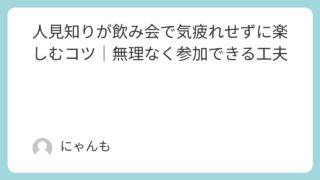 人 人見知りが飲み会で気疲れせずに楽しむコツ|無理なく参加できる工夫 人見知りで飲み会が苦手?気疲れしない参加の工夫や座る位置、会話術、断り方まで解説。無理せず自分らしく楽しむための方法を紹介します 2025.10.11 人