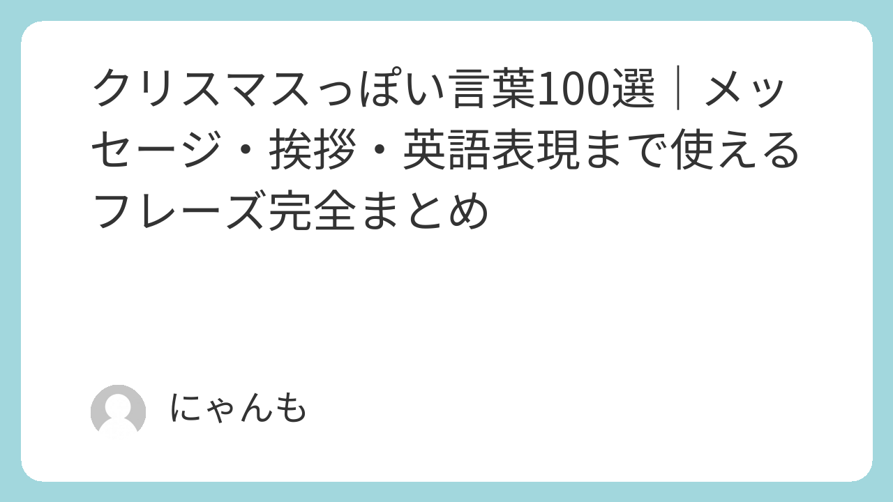 クリスマスシーズンになると、SNS・カード・メッセージ・プレゼントの添え書きなど、日常のあらゆる場面で「クリスマスっぽい言葉」を使う機会が増えます。