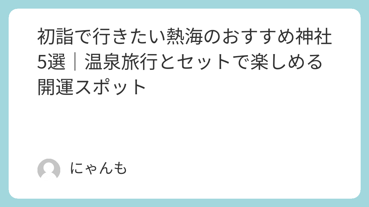 ⛩️「初詣に熱海で開運祈願したい」