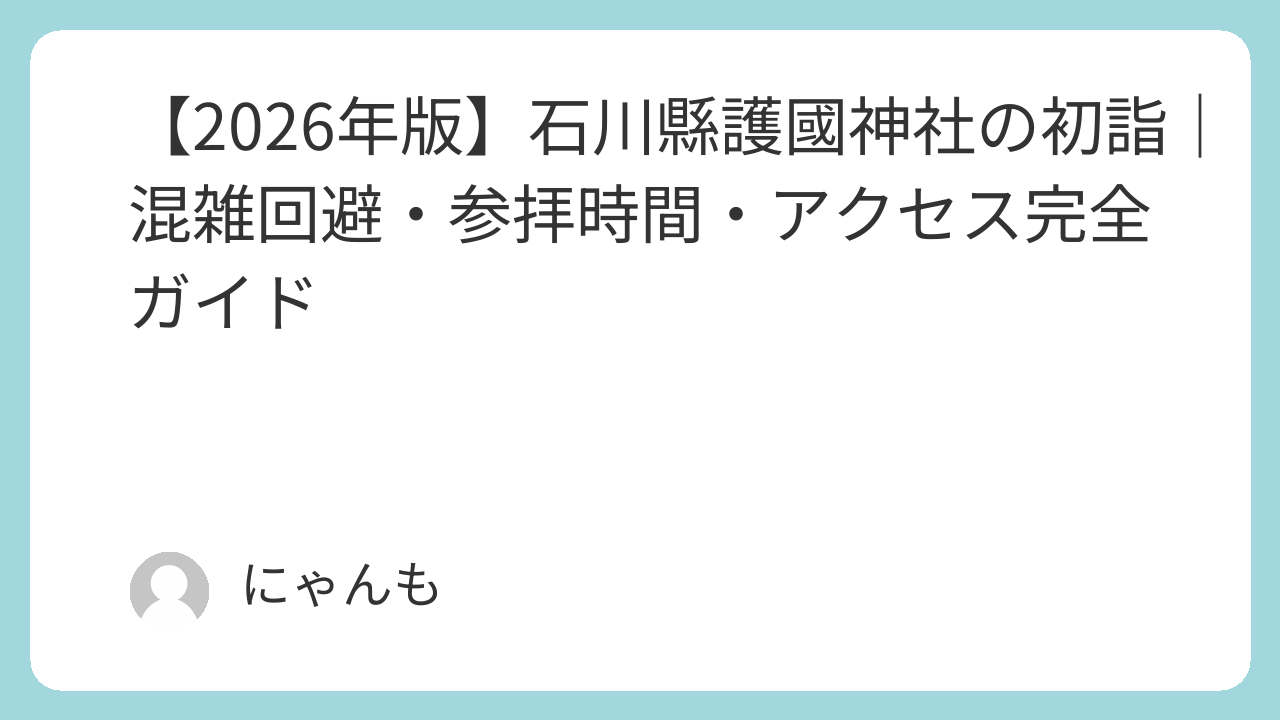 【混雑回避特化】石川縣護國神社の初詣を快適にするコツ【2026年版】
