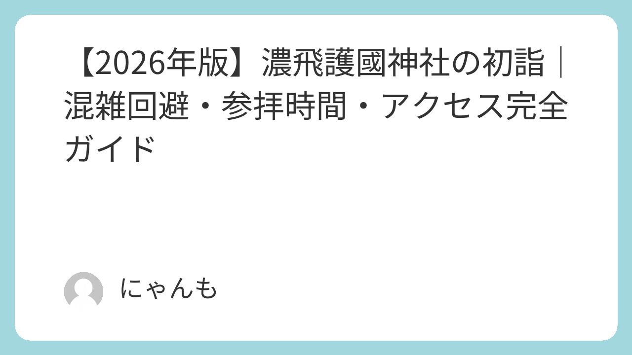 【混雑回避特化】濃飛護國神社の初詣を快適にするコツ【2026年版】