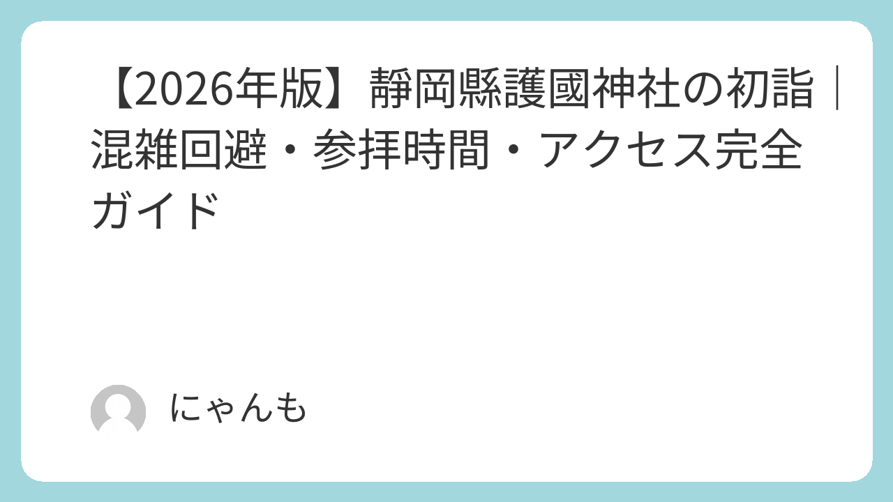 【混雑回避特化】靜岡縣護國神社の初詣を快適にするコツ【2026年版】
