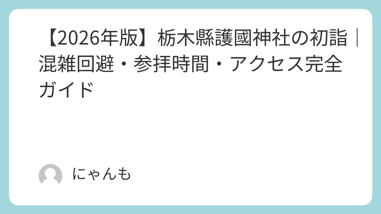 【混雑回避特化】栃木縣護國神社の初詣を快適にするコツ【2026年版】