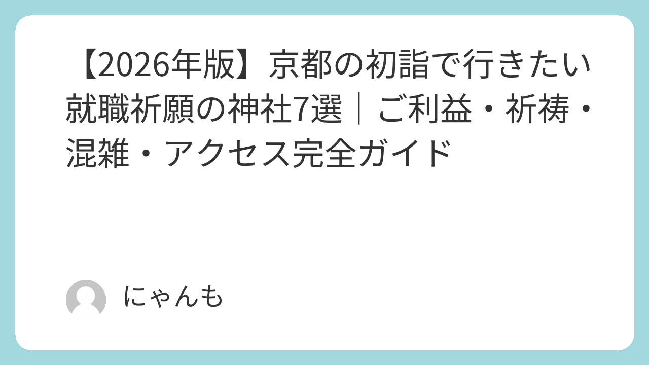 【2026年版】京都の初詣で行きたい就職祈願の神社7選|ご利益・祈祷・混雑・アクセス完全ガイド