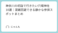 混雑を避けたい人も、ぜひ本記事を参考に自分に合った参拝タイミングを見つけてください。