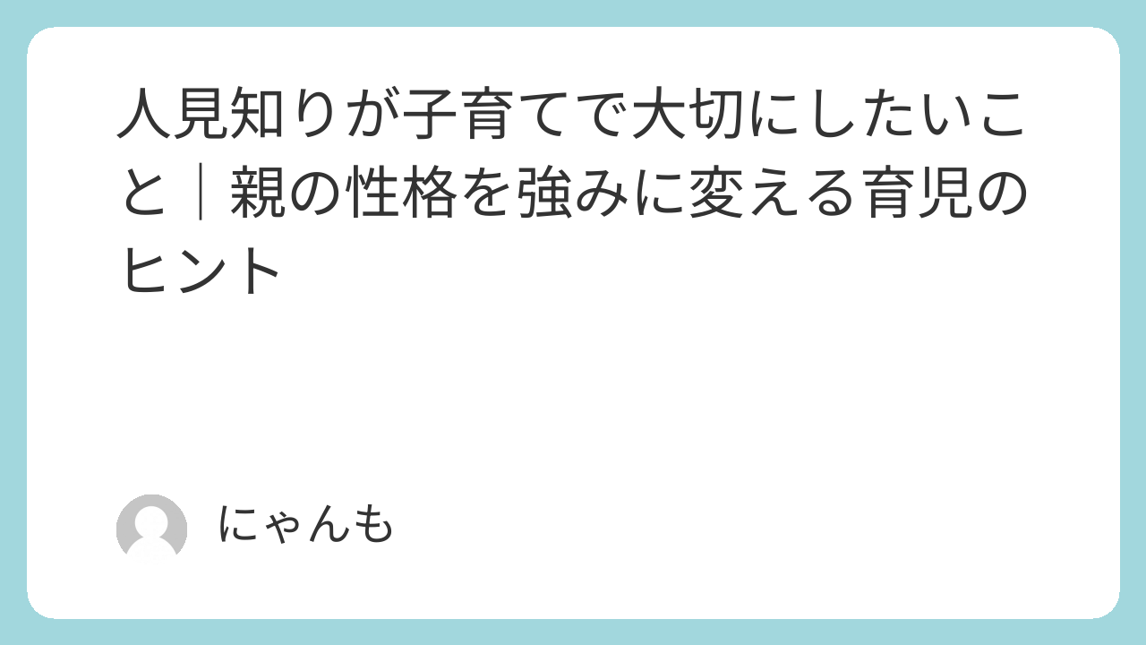 人見知りが子育てで大切にしたいこと|親の性格を強みに変える育児のヒント