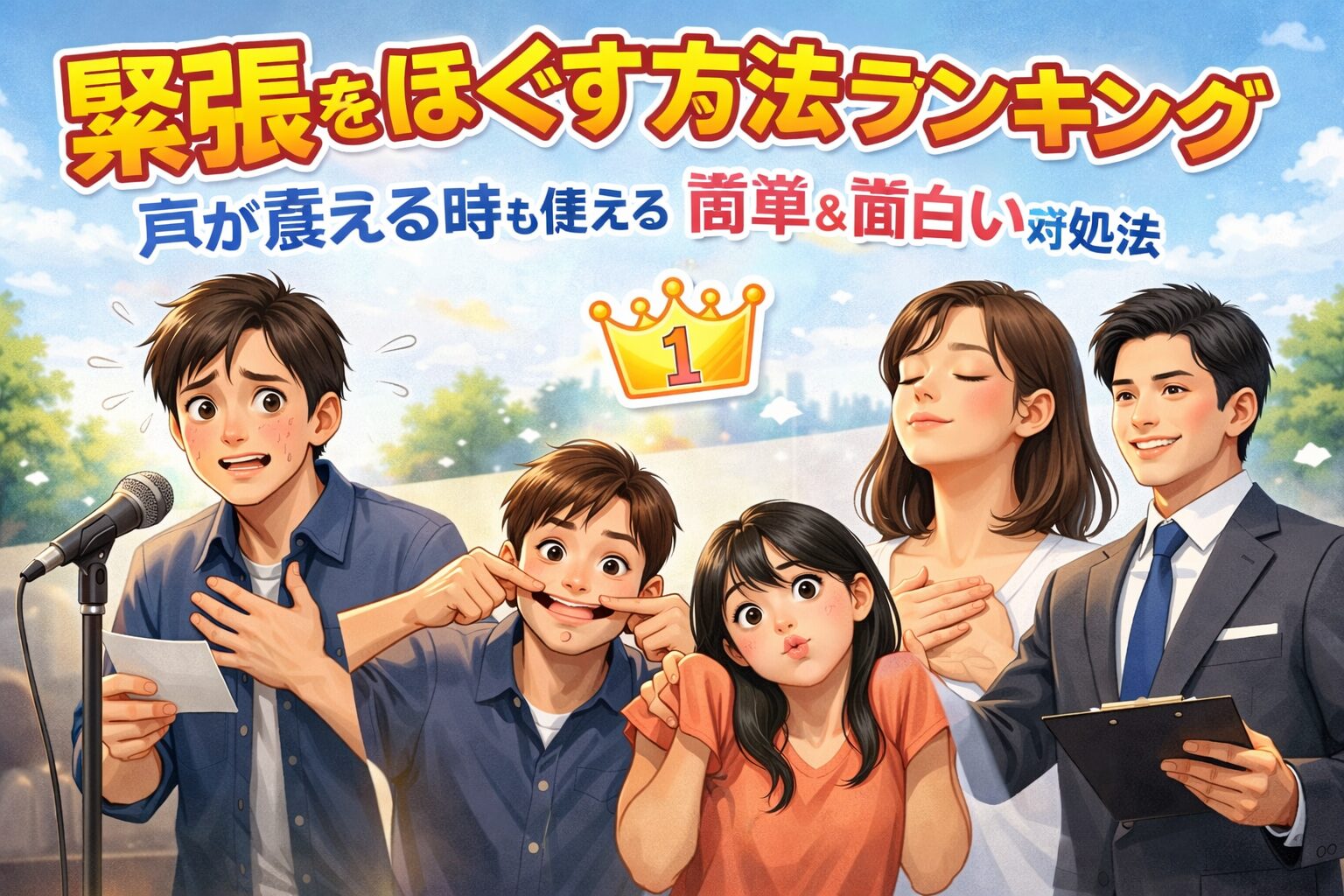 特に、簡単で即効性のある方法や、面白く緊張を受け流す工夫は非常に効果的です。