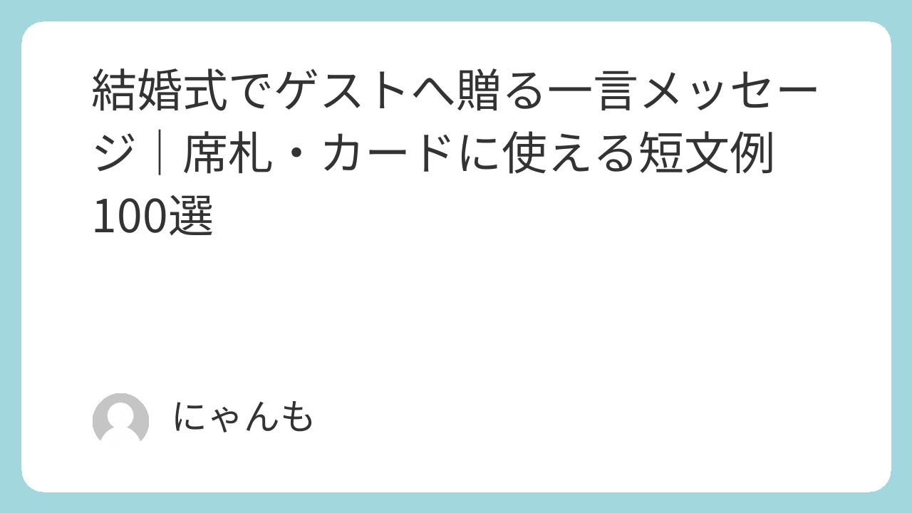 そこで本記事では、結婚式の席札やカードにそのまま書ける“一言メッセージ100選” を、ゲストの種類・関係性別にわかりやすくまとめました。