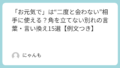 例)「うれしかった」「助かった」など、感情を伝えるだけで温度が上がる。