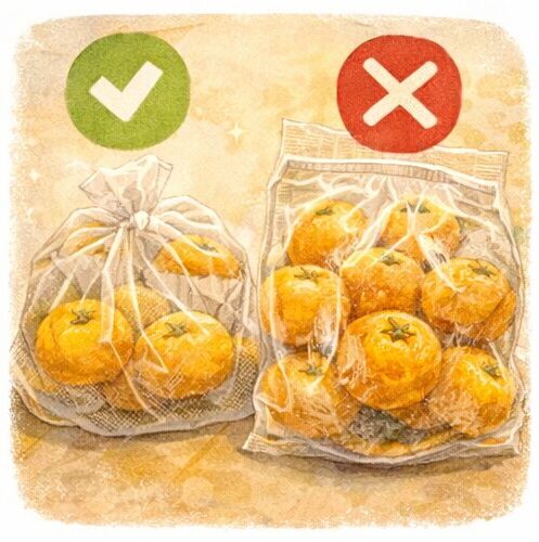 みかんは本来、風通しの良い場所での保存に向いた果物です。