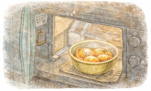 耐熱容器に皮と水を入れて加熱すると、蒸気と香りで庫内の汚れが落ちやすくなります。