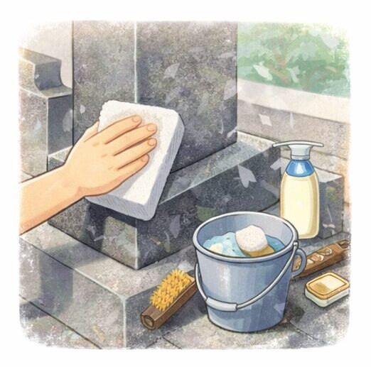 墓石を傷める原因になるため、柔らかいブラシや水を使った掃除が基本です。