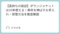 👉 詳細は関連記事:【長持ちの秘訣】ダウンジャケットは10年使える!寿命を伸ばす方法