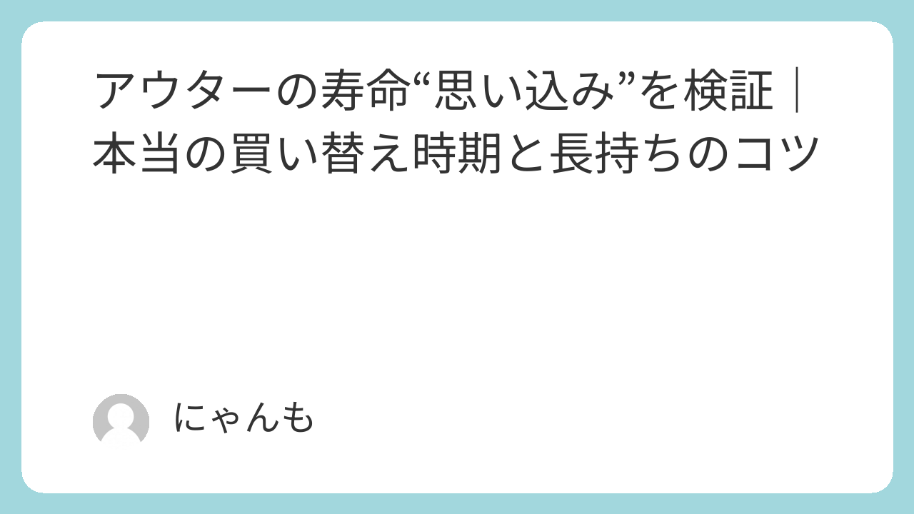 ──アウターの寿命について、こんな“思い込み”をしていませんか?