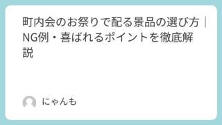 楽 町内会のお祭りで配る景品の選び方|NG例・喜ばれるポイントを徹底解説 町内会のお祭りで配る景品の選び方を解説。避けたいNG例と、子ども・大人・世代を問わず喜ばれる景品アイデアを紹介し、準備の工夫もまとめました。 2025.10.18 楽