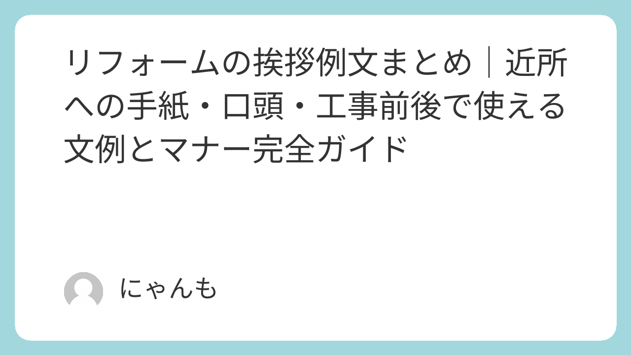 リフォーム工事は、どうしても周囲に迷惑がかかりやすいものですが、事前・事後の丁寧な挨拶だけで近隣の印象は大きく変わります。