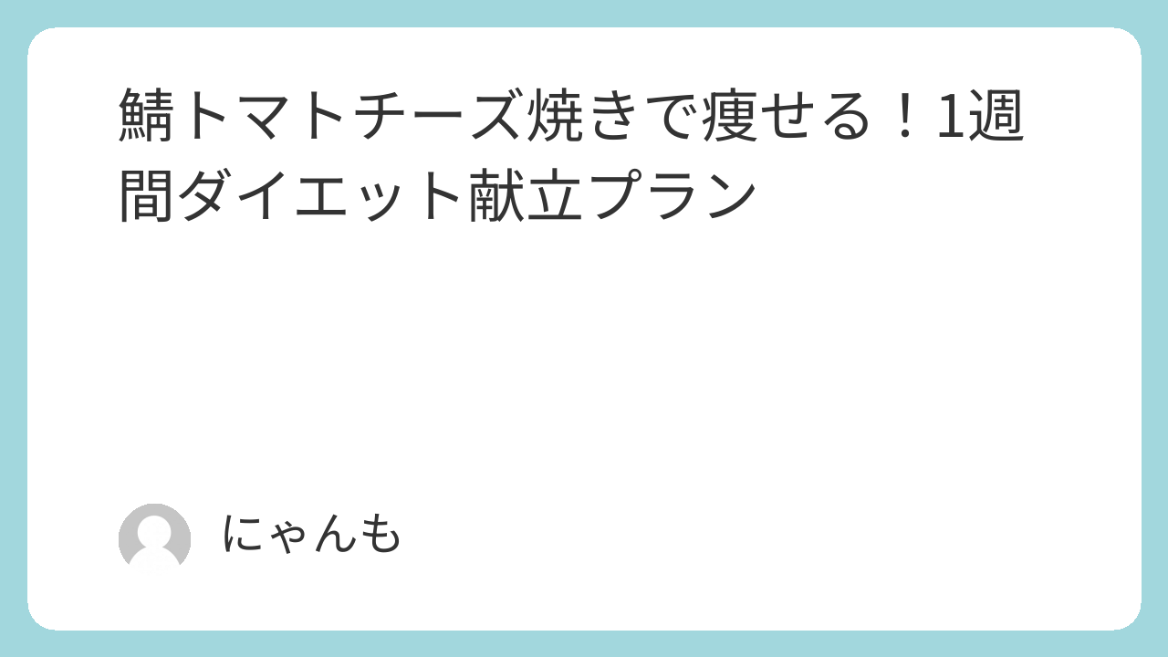 🐟「鯖トマトチーズ焼きを使ったダイエット1週間献立プラン」