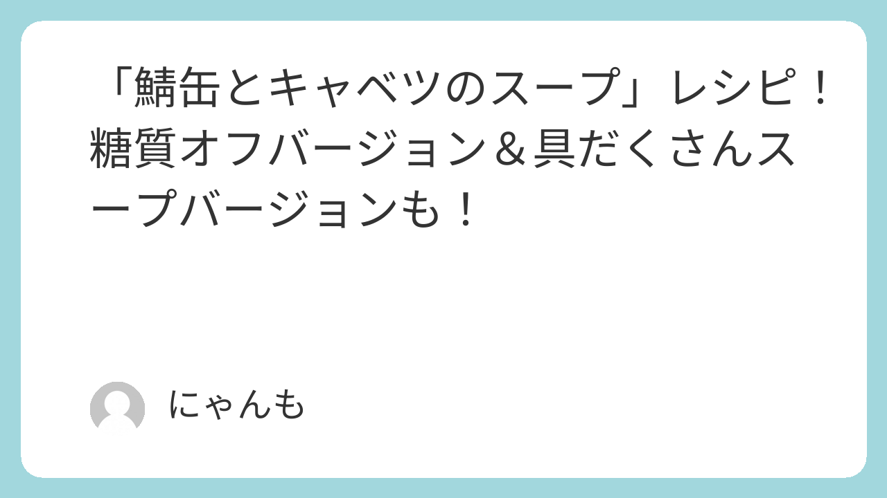 糖質オフ | キャベツ+鯖のみ。素材の旨みでシンプル&軽い | ダイエット中・夜の置き換えに最適 |