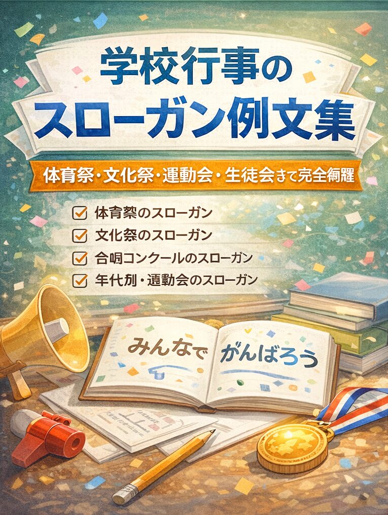 本記事では、「スローガン 体育祭」「スローガン 文化祭」「スローガン 運動会(保育園・小学校・中学校)」など、学校行事ごとに使いやすいスローガン例文をまとめて紹介します。