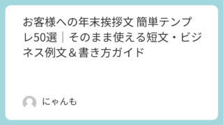イベント お客様への年末挨拶文 簡単テンプレ50選|そのまま使える短文・ビジネス例文&書き方ガイド お客様への年末挨拶文を簡単に作れるテンプレ50選。短文・丁寧文・店舗向け・BtoBなど目的別の例文を収録。メールやLINE公式にそのまま使える文例と書き方ガイド付きの完全版。 2025.12.02 イベント挨拶例文