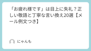 例文 「お疲れ様です」は目上に失礼?正しい敬語と丁寧な言い換え20選【メール例文つき】 「お疲れ様です」は目上に失礼?ビジネスメールや会話で使える丁寧な言い換え20選を例文つきで解説。社外向けの書き出し・社内の上司向けフレーズ・失礼にならない敬語を網羅した実用ガイド。 2025.12.06 例文