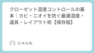 知 クローゼット湿度コントロールの基本|カビ・ニオイを防ぐ最適湿度・道具・レイアウト術【保存版】 クローゼットの湿度は45〜55%が最適。除湿剤・シリカ・炭・サーキュレーターの使い分け、収納レイアウト、季節別メンテとNG習慣まで実践的に解説。 2025.10.18 知