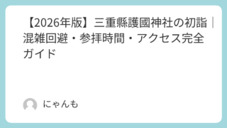 楽 【2026年版】三重縣護國神社の初詣|混雑回避・参拝時間・アクセス完全ガイド 2026年の初詣に三重縣護國神社を検討している方へ。ご利益、参拝時間、混雑しやすい時間帯と空いている狙い目、アクセス・駐車場、伊勢志摩観光と重なる時期の注意点まで詳しく解説。津市で落ち着いて初詣したい方におすすめです。 2025.12.16 楽