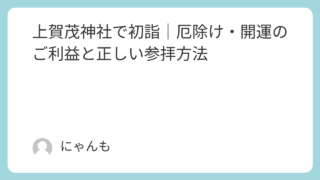 楽 上賀茂神社で初詣|厄除け・開運のご利益と正しい参拝方法 世界遺産・上賀茂神社の初詣を検討している方へ。ご利益や由緒、混雑する時間帯、アクセス方法、参拝マナーをわかりやすく解説します。厄除けや開運、家内安全を願う方に人気の上賀茂神社。混雑を避けるコツや初詣ならではの注意点も紹介しています。 2025.12.14 楽