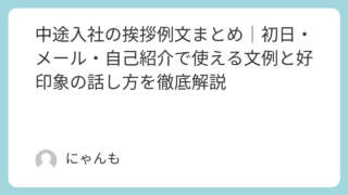 イベント 中途入社の挨拶例文まとめ|初日・メール・自己紹介で使える文例と好印象の話し方を徹底解説 中途入社の初日の挨拶やメール文、配属先での自己紹介に使える例文をまとめて紹介。短い挨拶からフォーマル例文まで網羅し、好印象を与える話し方やNG例も解説。明日から使える実践ガイドです。 2025.12.02 イベント挨拶例文