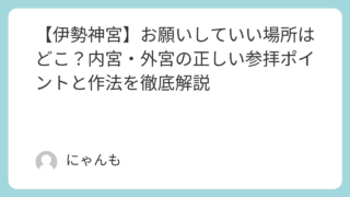 運 【伊勢神宮】お願いしていい場所はどこ?内宮・外宮の正しい参拝ポイントと作法を徹底解説 伊勢神宮で願い事をしていい場所は?正宮・別宮の違い、内宮・外宮での願い方、作法を徹底解説。お願いしていい場所・いけない場所が初めての人にも分かりやすいガイドです。 2025.12.08 運