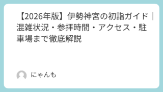 楽 【2026年版】伊勢神宮の初詣ガイド|混雑状況・参拝時間・アクセス・駐車場まで徹底解説 【2026年版】伊勢神宮の初詣を徹底ガイド。混雑状況、参拝時間、アクセス、駐車場、外宮→内宮の回り方まで詳しく解説。初詣をスムーズに楽しむためのポイントがわかる完全版ガイドです。 2025.12.08 楽