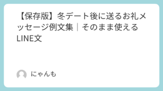イベント 【保存版】冬デート後に送るお礼メッセージ例文集|そのまま使えるLINE文 冬デート後に送るお礼メッセージ例文を100選紹介。初デート・2回目以降・付き合う前後など関係性別に、LINEでそのまま使える好印象な短文をまとめた保存版記事です。 2025.12.13 イベント例文