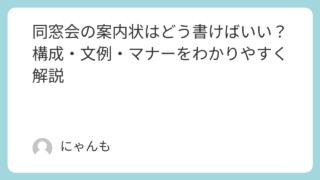 案内文 同窓会の案内状はどう書けばいい?構成・文例・マナーをわかりやすく解説 同窓会の案内状は構成とマナーが大切。本記事では【年代別文例・英語版・テンプレート集】を紹介し、誰でもすぐに使える案内状の書き方を解説します。 2025.10.24 案内文